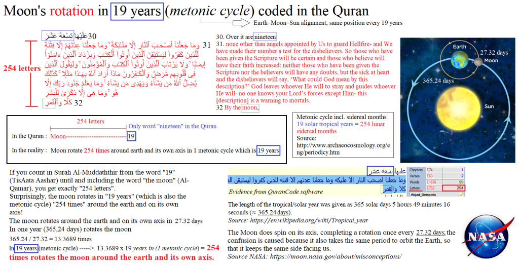It’s amazing that Metonic Cycle is Hinted in the Glorious Book Quran In The Surat (Chapter) Number 74 Ayat (Verse) Number 30, 31 and 32