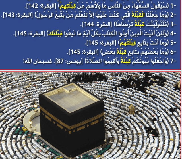 Tunapokwenda Hija tunaizunguka Jengo la Qaabah mara 7. Tunakwenda baina ya Safwa na Marwa mara Saba, Tunatupa Vijiwe Saba katika Jamrah kwa lengo la kumlaani Sheytan. Na Nyumba Hii ndiyo Tunayoielekea katika Sala Zetu Zote. Muujiza wa Kuruani ni kwamba neno “QIBLAH” limetajika katika Kuruani Mara 7 tu peke yake. Je unaona Vipimo vya kushangaza. . Allahu Akbar. Huu siyo Muujiza mdogo hata kidogo. Neno Qiblah limetumika katika Aya Zifuatazo: