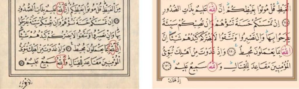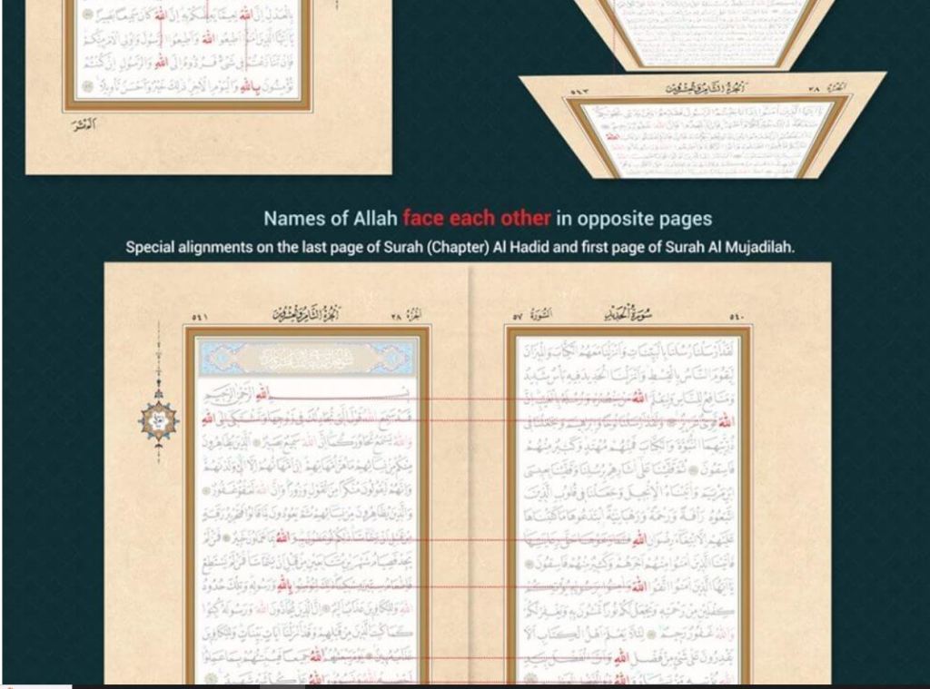 The concept of Tawafuq in the patterns of the Qur’an was first discovered and demonstrated by Bediuzzaman Said Nursi. is defined as the coinciding of occurrences among seemingly disconnected and random events that reveal evident patterns of a higher pre-determined arrangement by the Creator, displaying His deliberate will and intent. It refers to synchronization or miraculous alignment in the Quran. Bediuzzaman realized that words, particularly the name ‘Allah’, were in Tawafuq in his copy of the Qur’an, which was handwritten in the style of Hafiz Osman. He observed that a significant portion of the words “Allah” were aligned miraculously. He came to believe that this Tawafuq was an intended outcome, serving as an embellishment and beautification. This realization led him to decide to have a new copy of the Qur’an handwritten in a style that would visually show this discovered Tawafuq miracle, which he understood existed in the composition of the word “Allah” in the Qur’an. He appointed students to undertake this task, emphasizing that they should not use their own ability to create the Tawafuq, but rather reveal the one that already exists in the Qur’an.