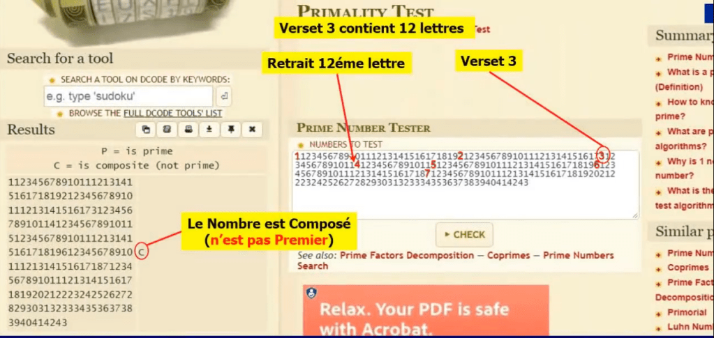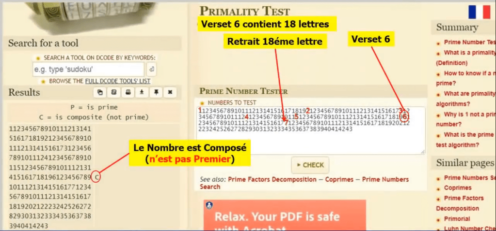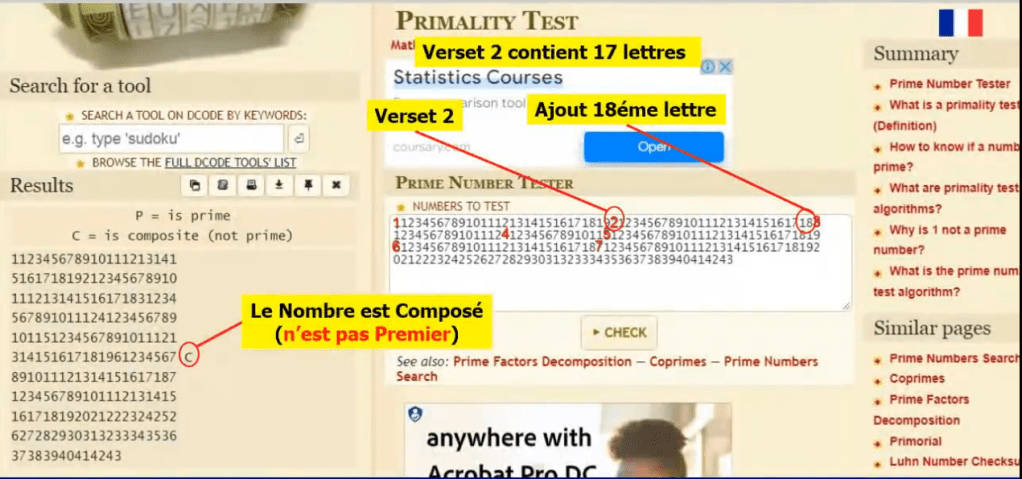 Let’s continue to add a letter on the Verse number 2 and see the Testing results. Verse Number 2 has 17 Letters and if we just add a letter (Number 18) the long number changes to a Composite Number!! see below the strange results. The result on the left shows C which means Composite Number!!!!!!!!!