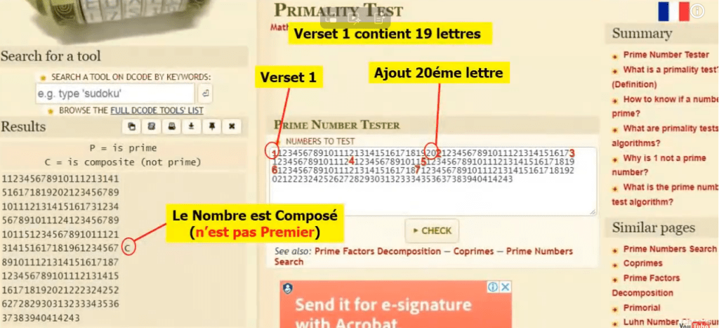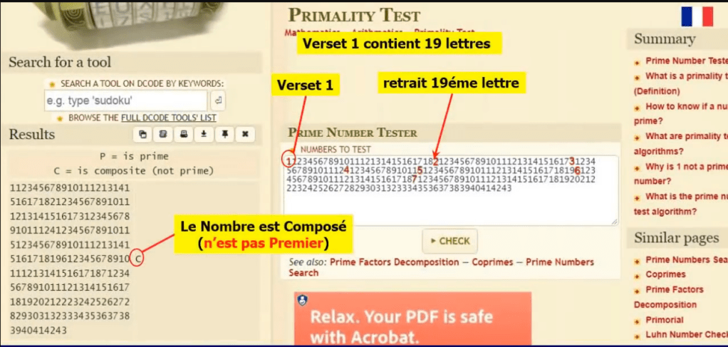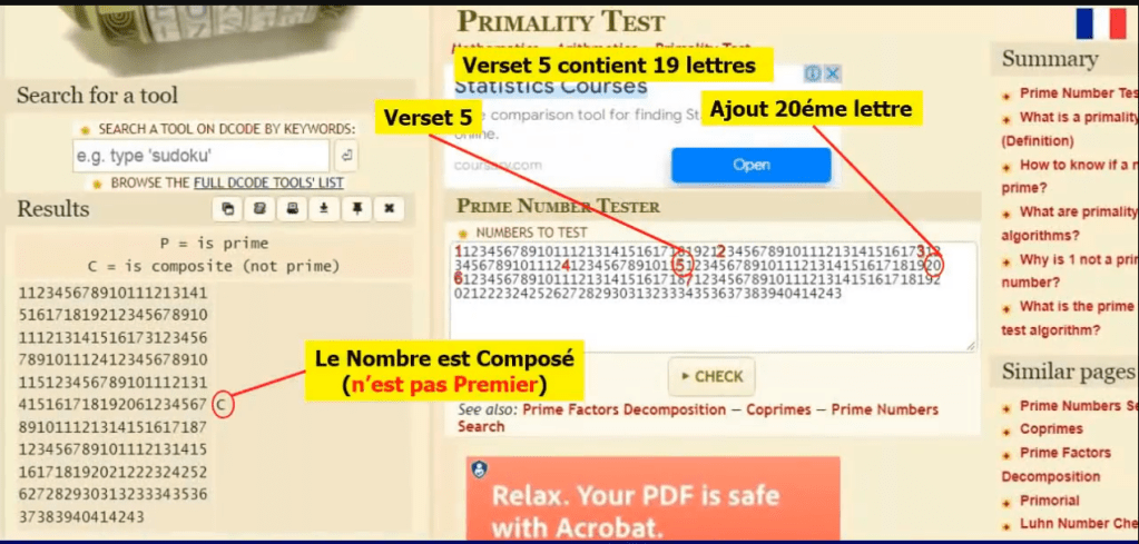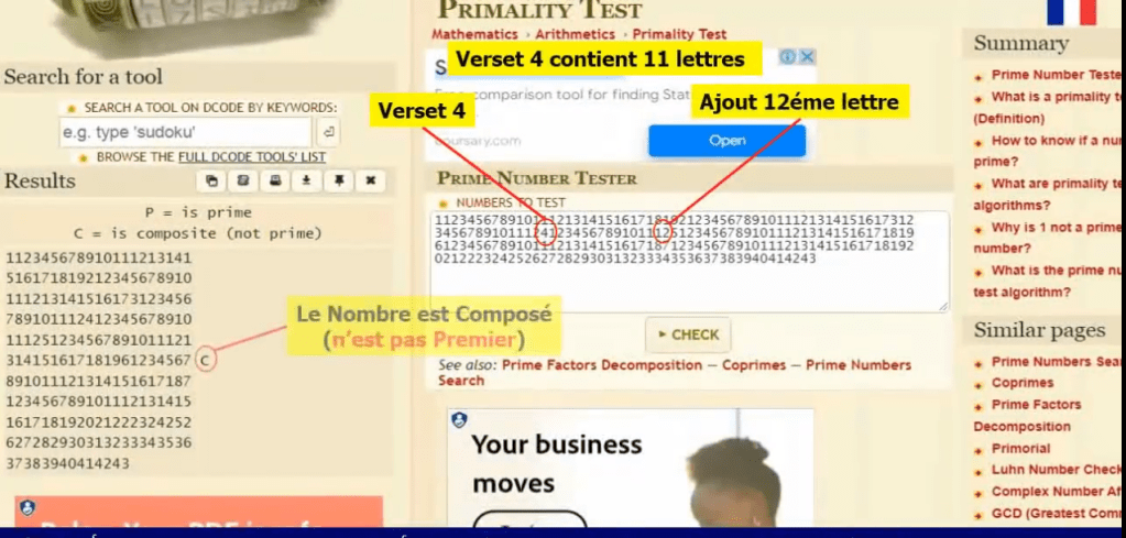 As the photo below Let’s try adding a letter to the first Verse. For example, if we add the 20th letter (since Chapter One of the Quran has 19 letters in Verse Number 1), we test by increasing the count from 19 to 20. (Number 19 is a letter M and if we just add another number representing an extra letter) This change turns the number into a Composite Number, no longer a Prime Number! do you see this Strange Testing!!!!
