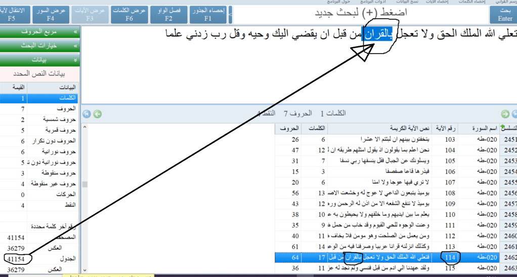 The word بِٱلۡقُرۡءَانِ (Quran) is the 41154th word in the Quran, which has miraculous significance.