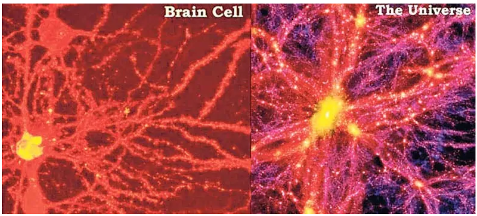 Networking Architecture: The brain’s neuronal network and the cosmic web (filaments of dark matter connecting galaxy clusters) share similar, non-random patterns of interconnectivity.