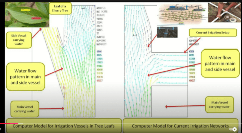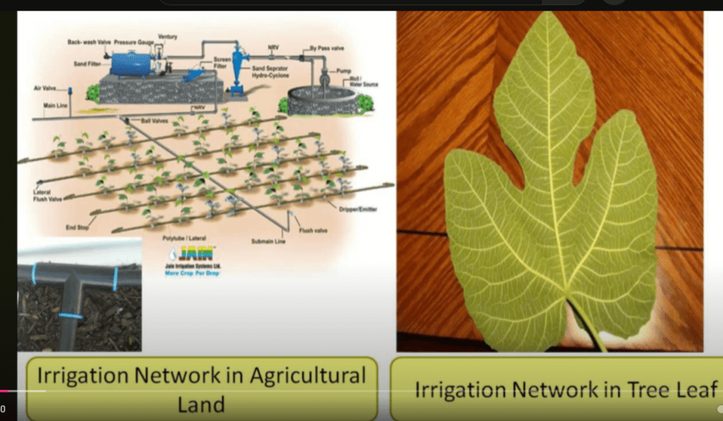 Angalia picha hapa chini ya Jani La Mtini na Mishipa Yake ilivyopangika. Mfano huu pia Umekopiwa na Wataalamu wa Irrigation System. Mfano Mzuri wa Pipes za Maji katika Kilimo. Ukilinganisha na Jani la Mtini utaona Lile Jani ni sawa na Shamba na Mishipa ya jani hili ni sawa na Pipes za Shamba.