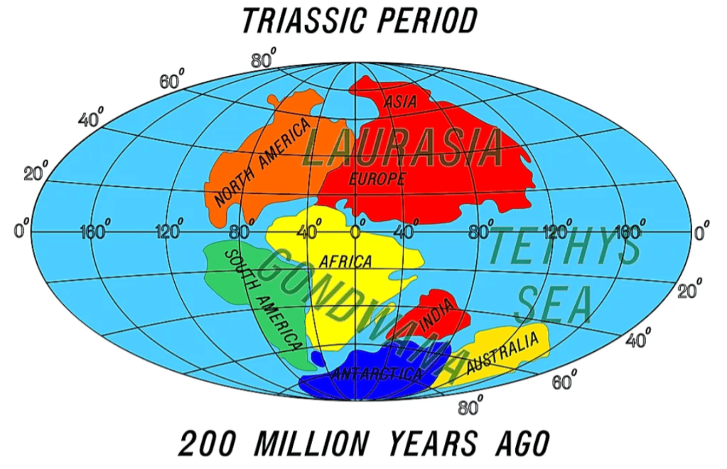 Nearly 300 million years ago, the geography of the Earth was drastically different than it is today. This time period, between 280 million and 230 million years before present, was known as the late Paleozoic to early Mesozoic Era, and it was during these periods that Earth consisted of one collective ocean, called Panthalassa, and one single land mass or supercontinent known as Pangea. This name stems from the Greek word ‘pan’ meaning all or whole, and Gaia which refers to Mother Earth.