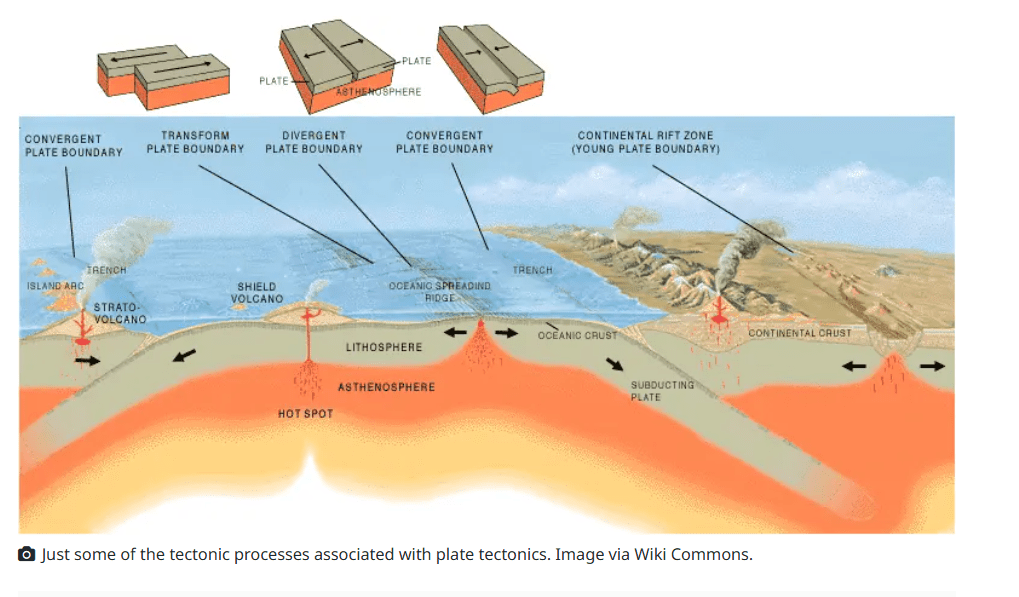 Na Kama tulivyoelezea kwamba Masahani au Mapande ya Tabaka la ardhi (Plate Tectonics) ) yanayumba yumba na kwa ajili hiyo hutengana na kuna sehemu nyingine hukaribiana na hukutana.