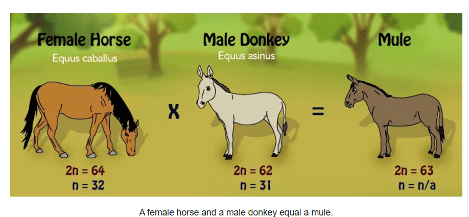 Farasi (kushoto)Chromosome 64 Punda (Katikati)Chromosome 62 na Nyumbu (Kulia)Chromosomes 63