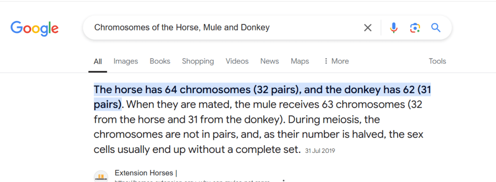 Kithibitisho Kuhusiana na Chromosomes za Farasi, Nyumbu na Punda kutoka katika Mtandao (Internet) Kwa Kutumia Chombo cha Utafiti (Google)