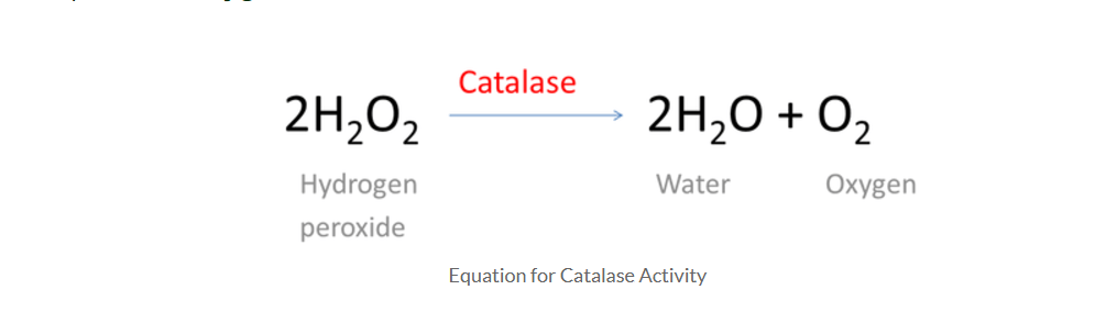 H2O2 inavunjwa na Catalase na kuwa H20 (Molecule au Tonye dogo la Maji) na 02 (Atoms Mbili za Oxygen) Na hivi ndivyo inavyokuwa katika hali ya kawaida ya maisha ya Binaadamu.