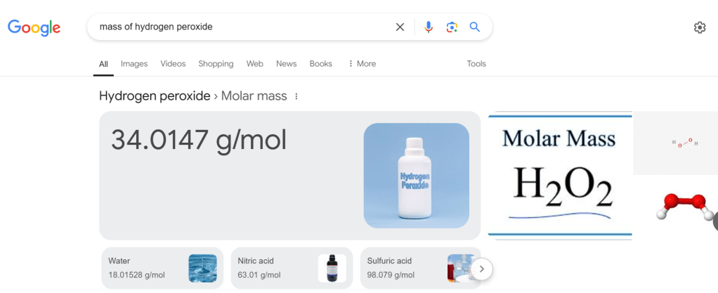 Molar mass au Uzito wa Atoms katika Kila Mole Moja ya Hydroigen Peroxyde ni kama ifuatavvyo: