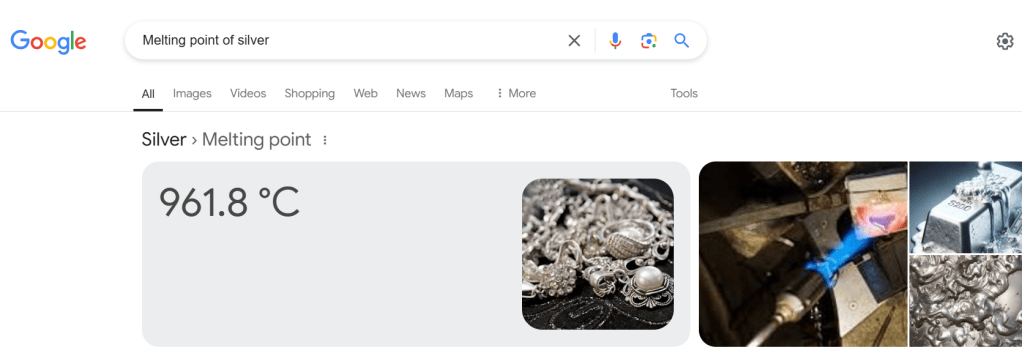 Uthibitisho wa Melting Point Ya Silver kutoka katika Google. Allahu Akbar.